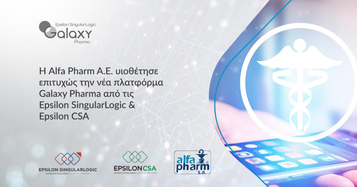 Η Alfa Pharm Α.Ε. επέλεξε τις Epsilon SingularLogic και Epsilon CSA, μέλη του Ομίλου EPSILON NET, και τη λύση Galaxy Pharma ERP για να αναβαθμίσει την εμπορική της λειτουργία και να αυτοματοποιήσει τις καθημερινές επιχειρησιακές της διαδικασίες.