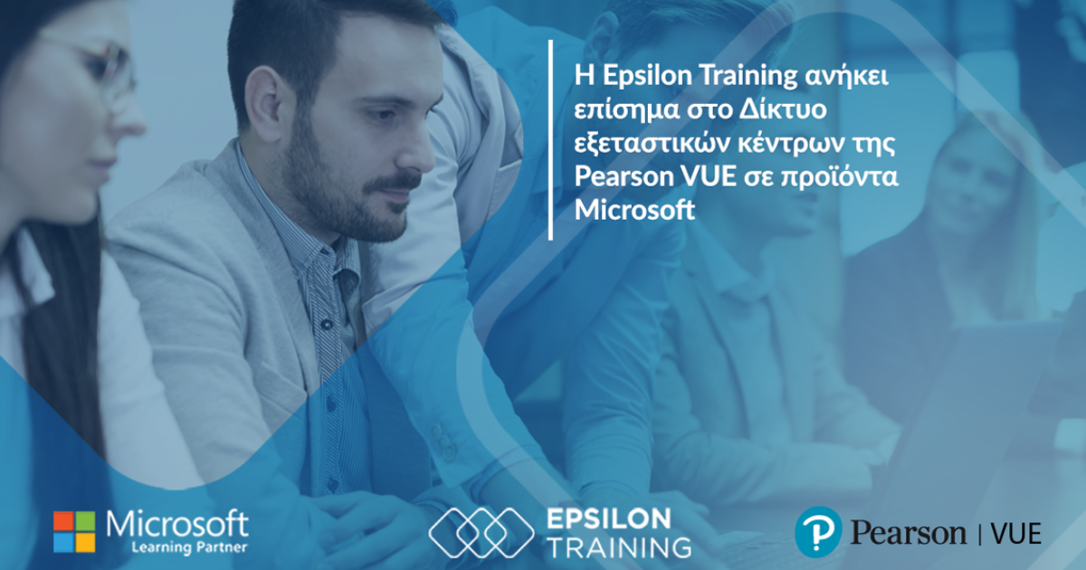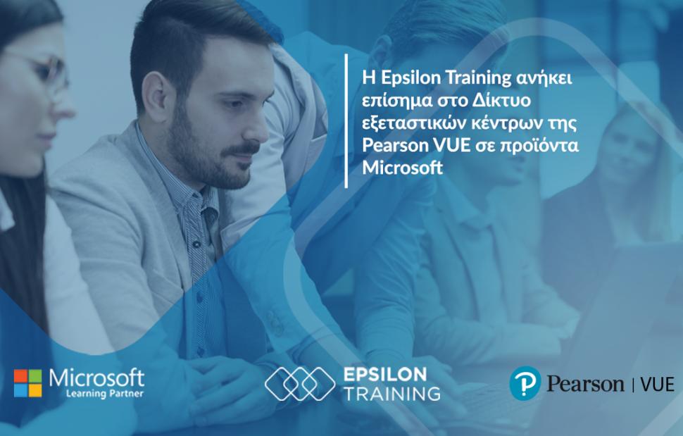 Ο Όμιλος Epsilon Net, ανακοινώνει την είσοδο της Epsilon Training, της επιχειρηματικής μονάδας του Ομίλου για την παροχή εκπαιδευτικών υπηρεσιών σε επαγγελματίες και στελέχη επιχειρήσεων, στο Δίκτυο εξεταστικών κέντρων της Pearson VUE σε προϊόντα Microsoft. Ως επίσημος φορέα Τεχνικής Εκπαίδευσης «Microsoft Learning Center» η Epsilon Training αποτελεί πλέον εξεταστικό κέντρο για την παροχή Πιστοποιημένων τεχνικών προγραμμάτων εκπαίδευσης για όλα τα προϊόντα και τις τεχνολογίες της Microsoft, όπως: Azure, SQL Server, SharePoint Server, Windows Server, Exchange Server, Microsoft Security, Visual Studio, Office 365.