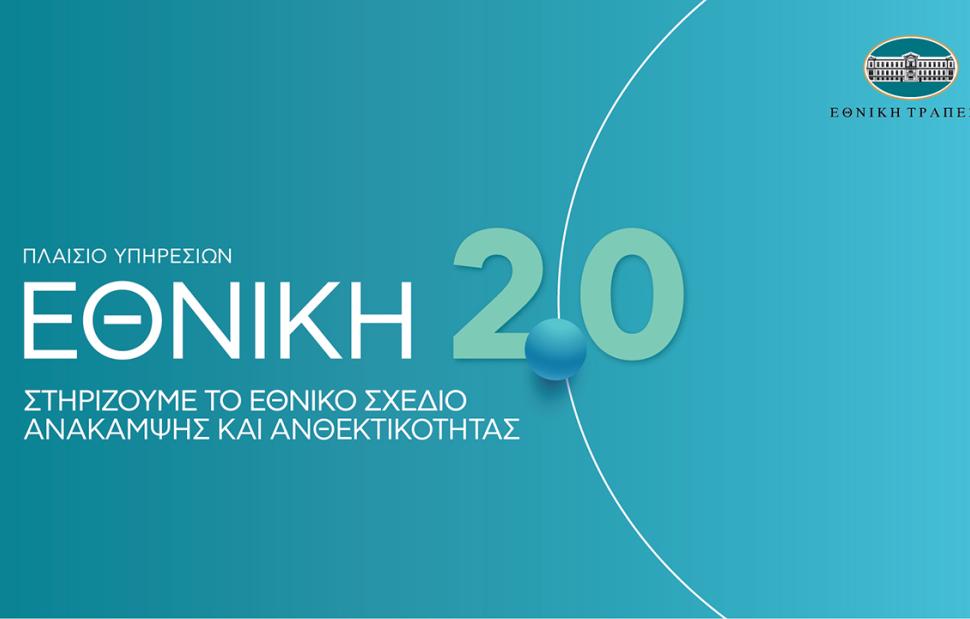 Σε εφαρμογή τίθεται το σχέδιο της Εθνικής Τράπεζας "Εθνική 2.0", προκειμένου να παράσχει άμεσες λύσεις στις επιχειρήσεις που θα συμμετάσχουν σε προγράμματα χρηματοδότησης από τους πόρους του Ταμείου Ανάκαμψης.