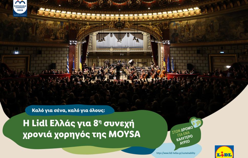 Η Lidl Ελλάς, ως θερμός υποστηρικτής των πολιτιστικών δρώμενων της χώρας, βρίσκεται στο πλευρό της Συμφωνικής Ορχήστρας Νέων Μεγάρου Μουσικής Θεσσαλονίκης (MOYSA) για 8η συνεχή χρονιά.