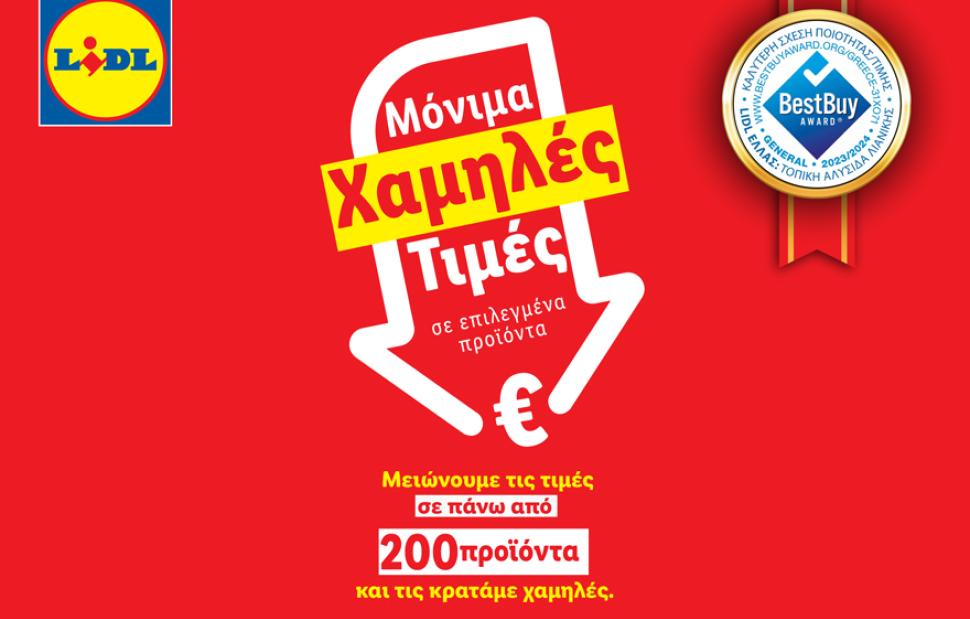 Με πρωταρχική δέσμευσή της να προσφέρει την καλύτερη ποιότητα στην καλύτερη τιμή, η Lidl Ελλάς εξασφαλίζει μόνιμα χαμηλές τιμές σε πάνω από 200 προϊόντα έως 35%.