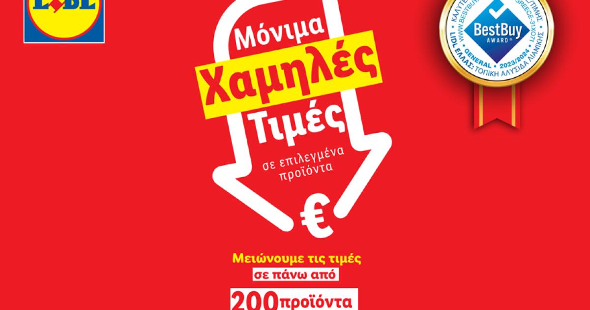 Με αίσθημα ευθύνης απέναντι στο καταναλωτικό κοινό, η Lidl Ελλάς προχωρά σε νέα μείωση τιμών ώστε να απολαμβάνουν όλοι, κάθε στιγμή, ποιοτικά προϊόντα σε μόνιμα χαμηλή τιμή. Η κίνηση αυτή έχει ως στόχο να διευκολύνει τους καταναλωτές να καλύψουν όλες τις βασικές ανάγκες του νοικοκυριού εύκολα, γρήγορα και κυρίως οικονομικά.