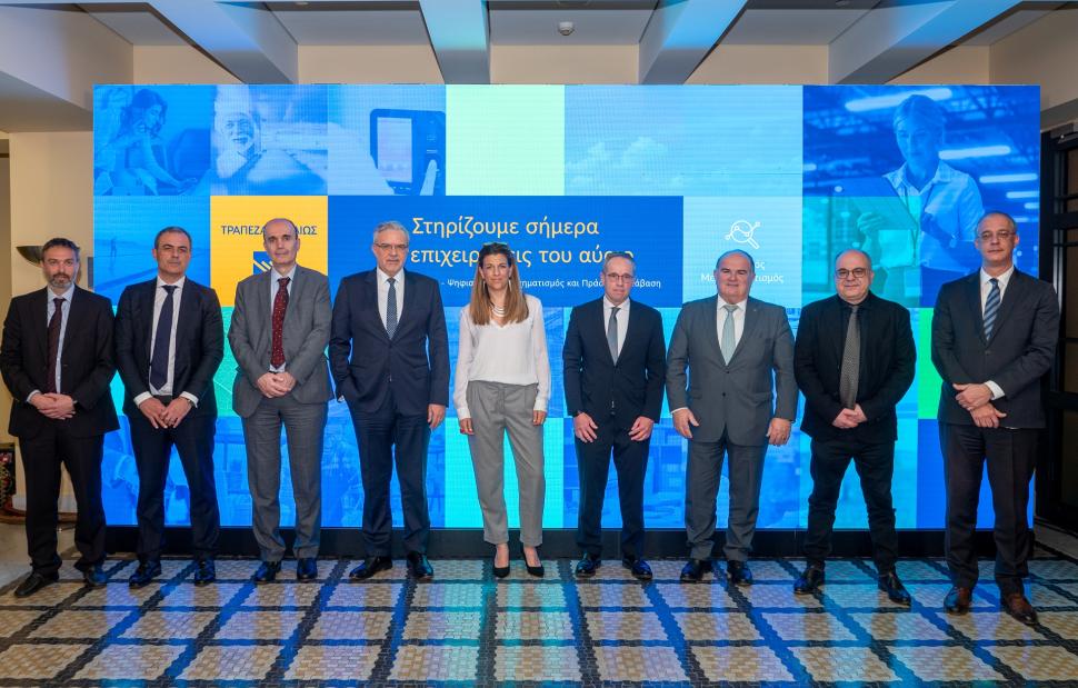 Ενημερωτική εκδήλωση για τους πελάτες της με αντικείμενο τις ευκαιρίες που παρουσιάζονται για τις επιχειρήσεις από το νέο ΕΣΠΑ 2021 -2027 πραγματοποίησε σήμερα η Τράπεζα Πειραιώς. Κατά την εκδήλωση δόθηκε έμφαση στις δράσεις Ψηφιακός Μετασχηματισμός και Πράσινη Μετάβαση, συνολικού προϋπολογισμού 1 δισ. ευρώ, μέσω των οποίων δημιουργούνται οι προϋποθέσεις για τη μετάβαση των μικρομεσαίων επιχειρήσεων στο επιχειρηματικό περιβάλλον της βιώσιμης ανάπτυξης.