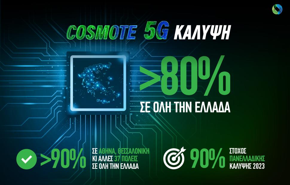 Για το 2023, στόχος της εταιρείας είναι να αυξήσει την πανελλαδική πληθυσμιακή κάλυψη του COSMOTE 5G σε 90%.