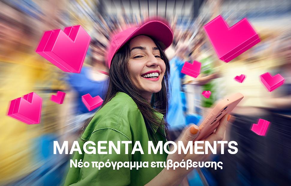 Το νέο πρόγραμμα επιβράβευσης Magenta Moments φέρνει σε όλους1 τους πελάτες της, ιδιώτες και επαγγελματίες, η COSMOTE TELEKOM. Το Magenta Moments, που αναβαθμίζει το COSMOTE DEALS FOR YOU, φέρνει έναν νέο κόσμο προνομίων & εμπειριών, γεμάτο δώρα, διαγωνισμούς και αποκλειστικές προσφορές από ένα ευρύ δίκτυο συνεργατών τόσο στην Ελλάδα, όσο και στο εξωτερικό, σε χώρες όπου δραστηριοποιείται η TELEKOM. Το Magenta Moments είναι διαθέσιμο μέσα από τα apps της COSMOTE TELEKOM και του WHAT’S UP.