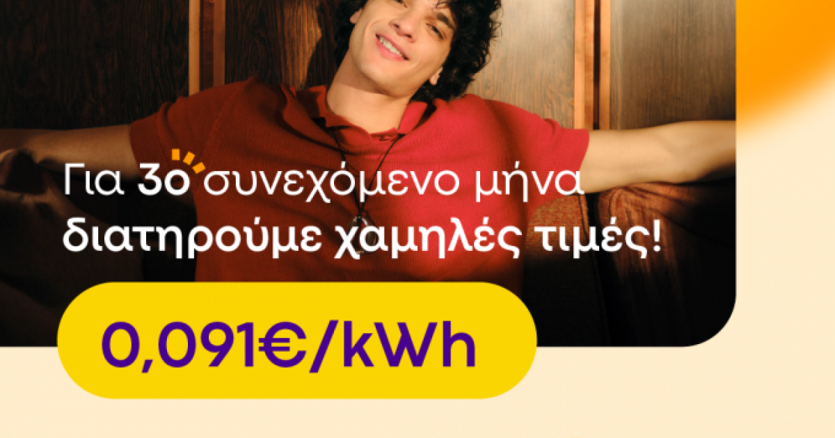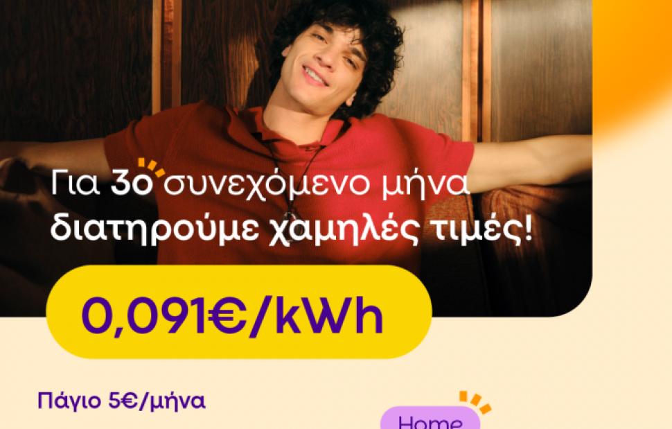 Συγκεκριμένα, στο νέο Protergia Value Easy, η τιμή διαμορφώνεται ως εξής: 0,091€/kWh και πάγιο 5€/μήνα
