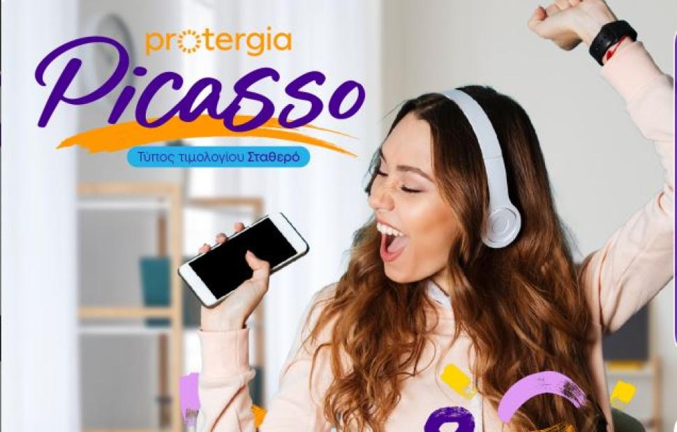 - Protergia Picasso, το προϊόν ενέργειας νέας γενιάς, στο οποίο ο καταναλωτής επιλέγει το ποσό που θα πληρώνει κάθε μήνα για το ρεύμα του ανάλογα τις ανάγκες του, με 9 διαφορετικά πακέτα για έναν ολόκληρο χρόνο, καλύπτοντας το σύνολο των ενεργειακών χρεώσεων (ανταγωνιστικές και ρυθμιζόμενες)!