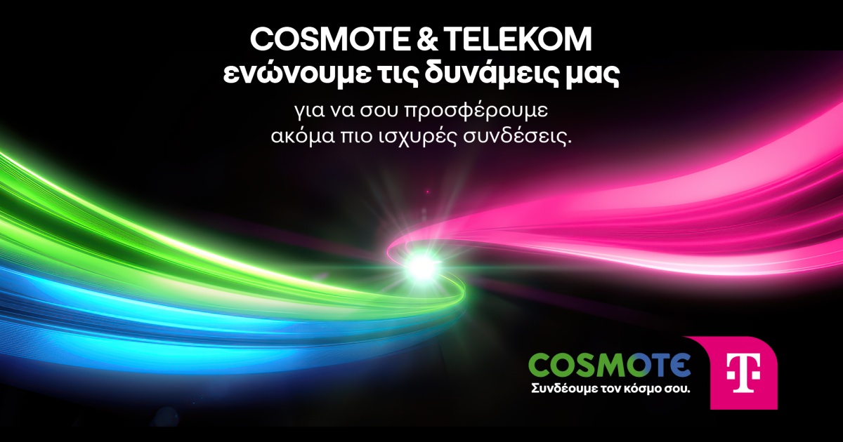 Η COSMOTE, ένα από τα ισχυρότερα και πιο δημοφιλή brands στην ελληνική αγορά, ενώνει τις δυνάμεις της με την TELEKOM, την κορυφαία μάρκα στις τηλεπικοινωνίες παγκοσμίως και μία από τις κορυφαίες στον κόσμο ανεξαρτήτως κλάδου, και μαζί δημιουργούν την COSMOTE TELEKOM.