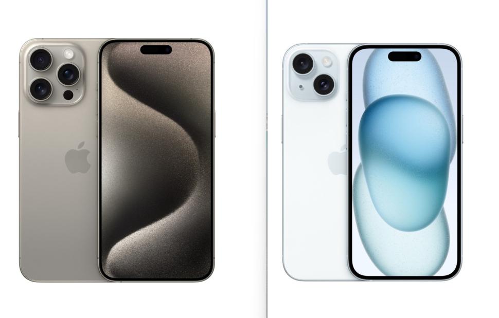 Τα iPhone 15 Pro και iPhone 15 Pro Max είναι κατασκευασμένα από τιτάνιο, με επεξεργαστή A17 Pro, προσαρμοσμένο κουμπί δράσης και το ισχυρότερο σύστημα κάμερας iPhone που υπήρξε ποτέ. Και εδώ οι οθόνες είναι 6,1’’ για το iPhone 15 Pro και 6,7’ για το iPhone 15 Pro Max. Επίσης, είναι σχεδιασμένα με περισσότερα ανακυκλωμένα υλικά. Κυκλοφορούν σε μαύρο, άσπρο, μπλε και ασημί.