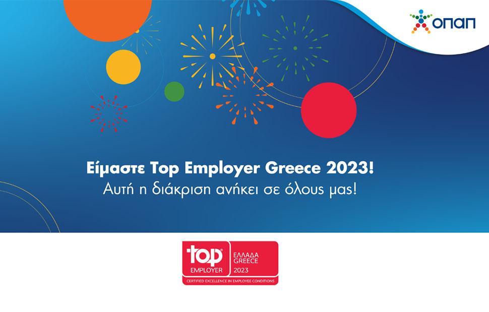 Ανάμεσα στους κορυφαίους εργοδότες της χώρας συγκαταλέγεται ο ΟΠΑΠ, ο οποίος έλαβε την πιστοποίηση Top Employer Greece 2023. Η τιμητική αυτή διάκριση αναδεικνύει την αφοσίωση της εταιρείας στην ανάπτυξη και εξέλιξη των εργαζομένων της, σε ένα εργασιακό περιβάλλον που ξεχωρίζει. Επιπλέον, υπογραμμίζει τη στρατηγική επιλογή του ΟΠΑΠ να εφαρμόζει ολοκληρωμένες πολιτικές, με επίκεντρο την ενίσχυση της δέσμευσης των ανθρώπων του και την παροχή μιας μοναδικής εργασιακής εμπειρίας.