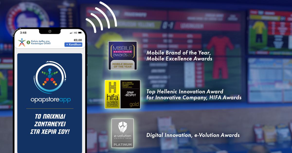 Τα έργα και οι πρωτοβουλίες για τον ψηφιακό μετασχηματισμό της εταιρείας κατέκτησαν συνολικά 9 κορυφαία βραβεία στα «Mobile Excellence Awards», «Hellenic Innovation Awards», «e-Volution Awards» και «BITE Awards». Μάλιστα, ο ΟΠΑΠ βραβεύτηκε ως «Mobile Brand of the Year», ενώ απέσπασε τη διάκριση «Top H.I. Award for Innovative Company» και «Platinum» βραβείο στην κατηγορία «Ψηφιακή Καινοτομία», ξεχωρίζοντας ανάμεσα σε δεκάδες ελληνικές εταιρείες από όλους τους κλάδους.