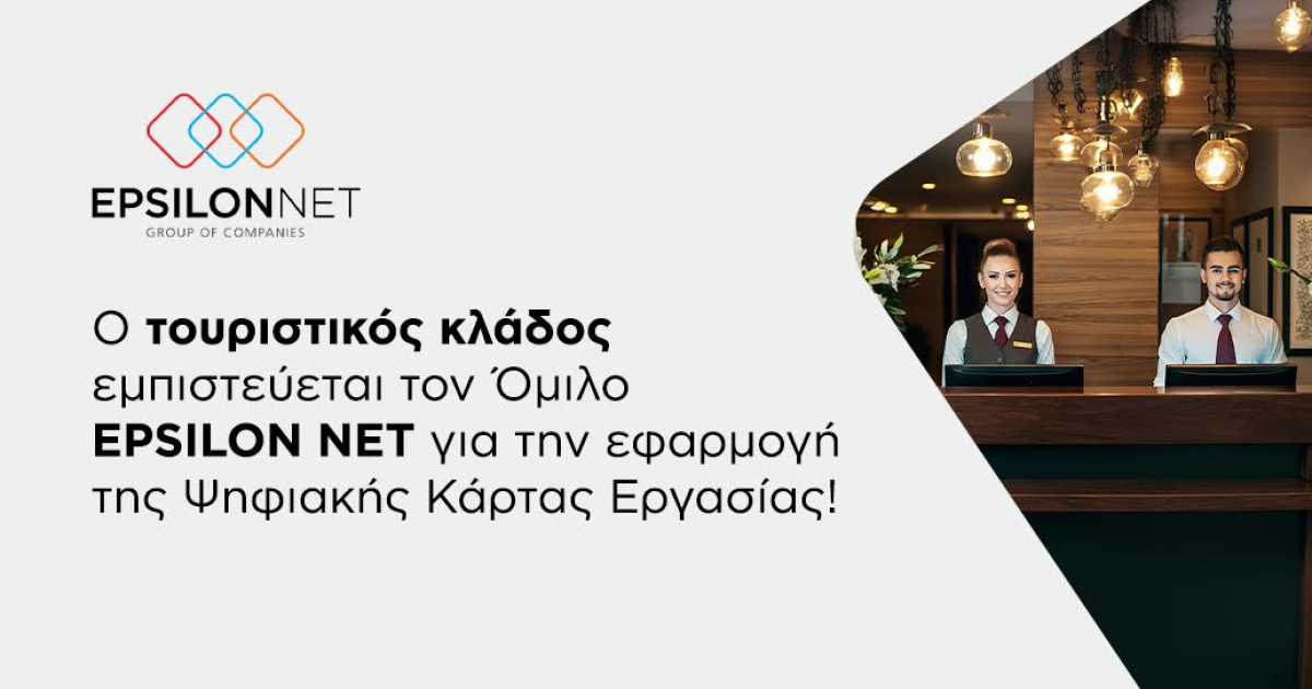 Από την 1η Μαρτίου 2025, η Ψηφιακή Κάρτα Εργασίας καθίσταται υποχρεωτική για τον κλάδο του τουρισμού και της εστίασης, σηματοδοτώντας μια νέα εποχή στη διαχείριση του ανθρώπινου δυναμικού. Ο Όμιλος EPSILON NET αναδεικνύεται ως ο τεχνολογικός ηγέτης του κλάδου, με περισσότερες από 20.000 τουριστικές και επισιτιστικές επιχειρήσεις να εμπιστεύονται τις λύσεις του Ομίλου για την πλήρη συμμόρφωση με τη νομοθεσία και την αποτελεσματική διαχείριση του προσωπικού τους.