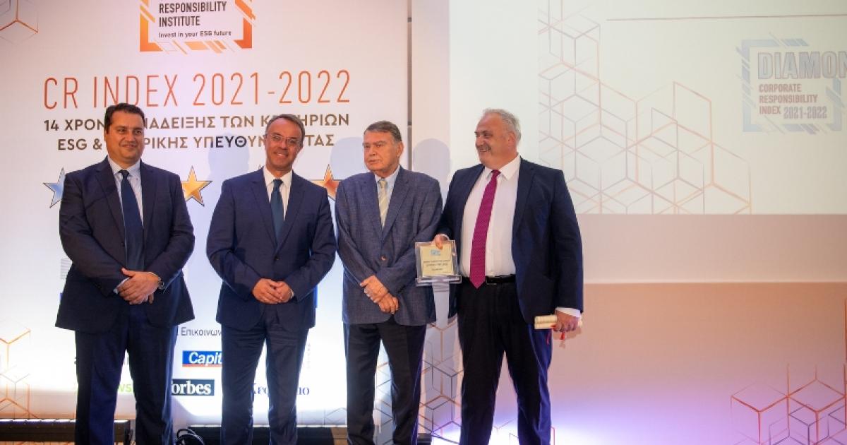 Το Ινστιτούτο Εταιρικής Ευθύνης (Corporate Responsibility Institute) ανέδειξε και επιβράβευσε, για δέκατη τέταρτη συνεχή χρονιά, τις εταιρείες που κάνουν τη διαφορά στο υπεύθυνο επιχειρείν, εφαρμόζοντας τα κριτήρια ESG που σχετίζονται με τις επιδόσεις τους σε περιβαλλοντικά, κοινωνικά ζητήματα και σε ζητήματα εταιρικής διακυβέρνησης. Το Ινστιτούτο Εταιρικής Ευθύνης, μετά από 14 χρόνια παρουσίας στην Ελλάδα, έχει πλέον υποστηρίξει περισσότερες από 80 ελληνικές και πολυεθνικές επιχειρήσεις από 12 διαφορετικούς κλάδους, που αντιπροσωπεύουν το 20% του ΑΕΠ της χώρα μας, να ενσωματώσουν αποτελεσματικά και μετρήσιμα υπεύθυνες πρακτικές στη στρατηγική τους.