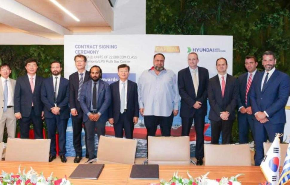 Πιο αναλυτικά, αυτήν την περίοδο ο όμιλος της Capital υλοποιεί ένα από τα μεγαλύτερα προγράμματα ναυπήγησης 57 νεότευκτων πλοίων με ημερομηνίες παράδοσης που εκτείνονται από το 2020 έως και το 2027. Για την παραγγελία των δύο πρώτων καινοτόμων πλοίων μεταφοράς υγροποιημένου CO2 (LCO2) η συμφωνία υπεγράφη στα γραφεία της Capital όπου παρευρέθηκαν μεταξύ άλλων οι: Βαγγέλης Μαρινάκης, Πρόεδρος και Ιδρυτής της Capital Maritime & Trading Corp., Γεράσιμος Καλογηράτος, Διευθύνων Σύμβουλος, Capital Product Partners LP, κ. Νίκος Λως, Διευθυντής, Curzon Shipbrokers Corp., κ. Μίλτος Ζήσης, Διευθυντής, Capital Gas Ship Management, Νικόλας Βαπόρης, Τεχνικός Διευθυντής, Capital Ship Management, Αλεξάνδρα Ξύστρα, Τεχνική Διευθύντρια, Capital Gas Ship Management. Tη Hyundai Heavy Industries εκπροσώπησαν οι S.Y. Park, Chief Operating Officer & Senior Executive Vice President, Y.H. Yeo, EVP &MD of London Office, S.D. Yoon, SVP & Head of Athens Office, J.H. Κim, SVP (HMD Sales). Επίσης παρευρέθηκαν οι Sid Nair, Newbuldings Director, Clarksons, Andy McKeran, Chief Commercial Officer Lloyd’s Register και ο Θεόφιλος Ξενακούδης Chief Commercial Officer, Marshall Islands International Registries.