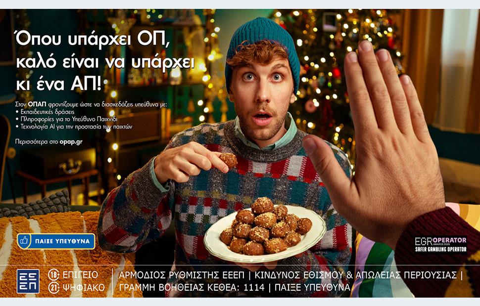 Τη νέα καμπάνια του για το Υπεύθυνο Παιχνίδι λάνσαρε ο ΟΠΑΠ, μέλος της Allwyn, με αφορμή την Χριστουγεννιάτικη περίοδο, που μόλις έχει ξεκινήσει. Με νεανική, σύγχρονη γλώσσα και αισθητική, η καμπάνια τοποθετεί το Υπεύθυνο Παιχνίδι και την ασφάλεια των παικτών στο επίκεντρο της διασκέδασης.