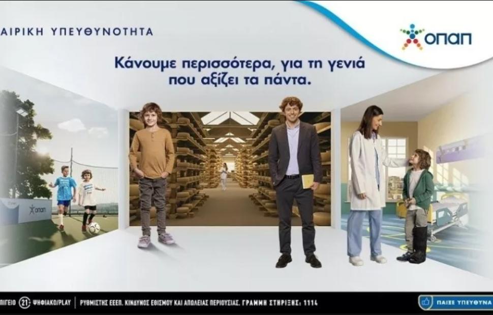 «Κάνουμε περισσότερα για τη γενιά που αξίζει τα πάντα» είναι το κεντρικό μήνυμα της νέας καμπάνιας Εταιρικής Υπευθυνότητας του ΟΠΑΠ, η οποία εστιάζει στο κοινωνικό έργο της εταιρείας και ειδικότερα στη δέσμευσή της να συμβάλει σε ένα καλύτερο αύριο για τη νέα γενιά της Ελλάδας. Η ολοκληρωμένη στρατηγική του ΟΠΑΠ για την Εταιρική Υπευθυνότητα, αναπτύσσεται στους πυλώνες της Υγείας, της Απασχόλησης και του Αθλητισμού.