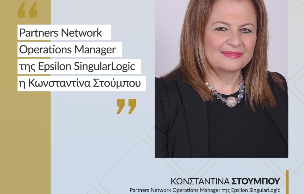 Στην EpsilonSingularLogic, μέλος του Ομίλου EpsilonNet, εντάχθηκε η κα Κωνσταντίνα Στούμπου, αναλαμβάνοντας και επίσημα από 15/02/2022 τη θέση τηςPartnersNetworkOperationsManager.