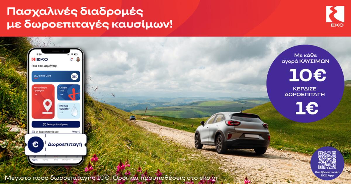 Η EKO, μέλος της HELLENiQ ENERGY, υποδέχεται το Πάσχα με μια δυναμική προσφορά στα καύσιμα που διευκολύνει τις μετακινήσεις των οδηγών, προσφέροντας δωροεπιταγές καυσίμων για κάθε πασχαλινή διαδρομή.
