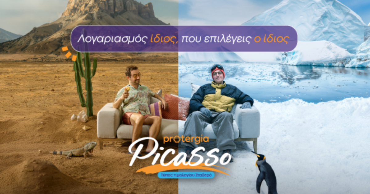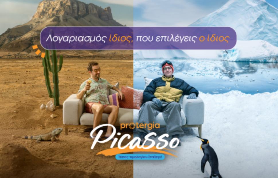 Η νέα διαφημιστική καμπάνια της Protergia αποτυπώνει και εξηγεί με τρόπο απλό τη δύναμη του Protergia Picasso, δηλαδή τα πολλαπλά οφέλη που προσφέρει ώστε ο λογαριασμός ρεύματος να παραμένει ίδιος, χειμώνα–καλοκαίρι. Το Picasso δίνει την ελευθερία και τον έλεγχο σε κάθε καταναλωτή να διαλέξει το πακέτο που του ταιριάζει, ώστε να απολαμβάνει τη σιγουριά ενός λογαριασμού χωρίς εκπλήξεις. Δείτε εδώ το σποτ.