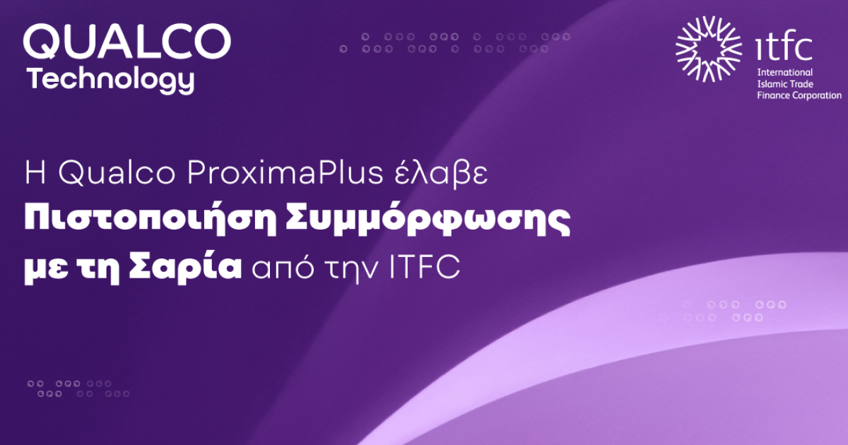 Η Qualco Technology, παγκόσμιος πάροχος λύσεων fintech και μέλος του oμίλου Qualco, ανακοινώνει ότι η πλατφόρμα χρηματοδότησης απαιτήσεων και εφοδιαστικής αλυσίδας (Supply Chain Finance), Qualco ProximaPlus, έλαβε Πιστοποίηση Συμμόρφωσης με τις αρχές της Σαρία από την International Islamic Trade Finance Corporation (ITFC).