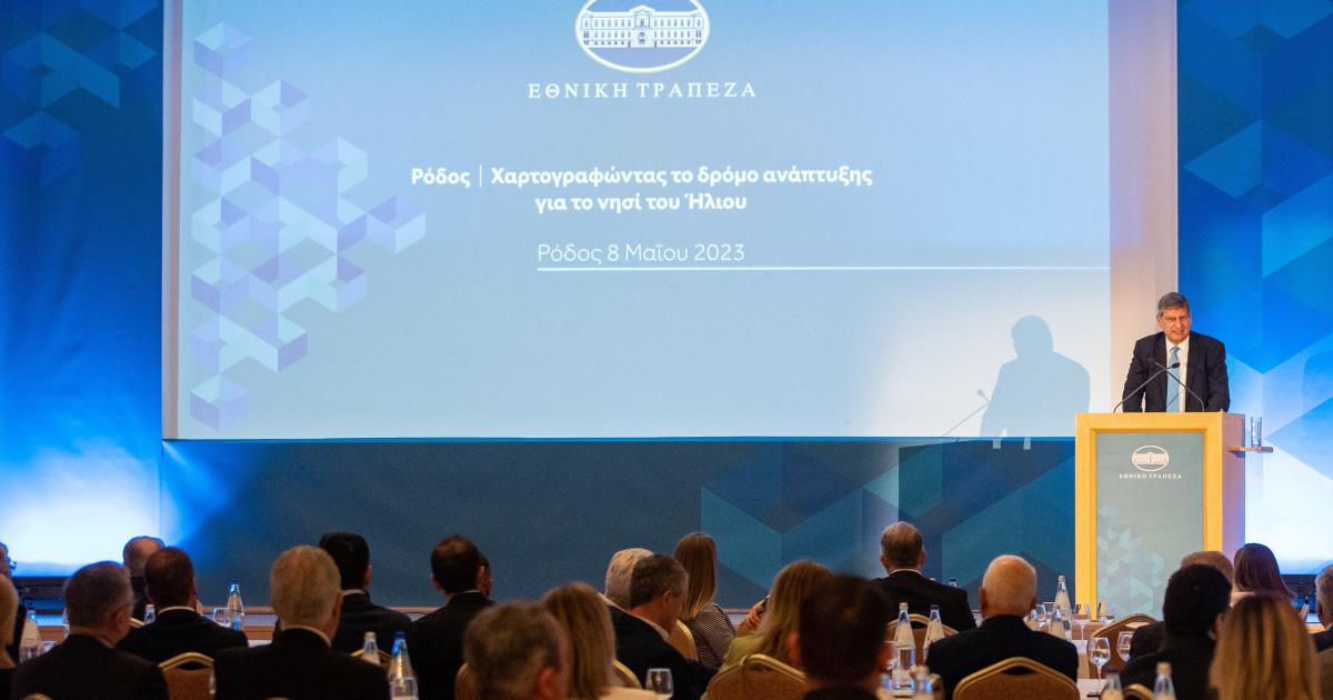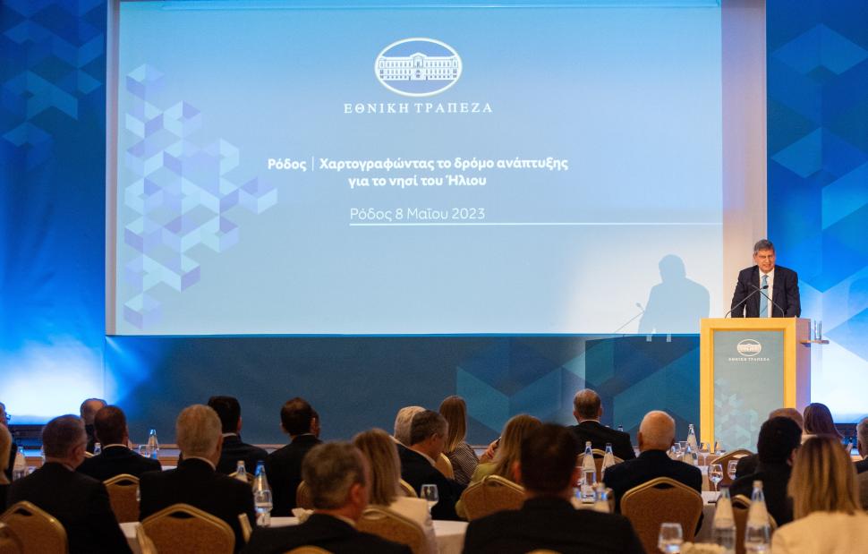 Επίσης, η κα Τζέση Βουμβάκη, Deputy Chief Economist της Εθνικής Τράπεζας, παρουσίασε μία εις βάθος ανάλυση της αναπτυξιακής προοπτικής της Ρόδου. Αξιοποιώντας πλεονεκτήματα όπως υψηλή ηλιοφάνεια, παραλίες με γαλάζια σημαία και υψηλής ποιότητας ξενοδοχειακές υποδομές, η Ρόδος έχει αναχθεί σε βασικό πυλώνα τουριστικής ανάπτυξης της χώρας, καλύπτοντας το 12% του ελληνικού τουρισμού (και το 17% σε όρους ξένων τουριστών). Ωστόσο, το υφιστάμενο μοντέλο τουριστικής ανάπτυξης (Ήλιος και Θάλασσα) με υψηλή εξάρτηση από πρακτορεία και με έμφαση σε all-inclusive υπηρεσίες, αν και επιτυχημένο βάσει των υψηλών επιδόσεων του νησιού (τόσο στη δυναμική επταετία 2012-2019 όσο και στην ανάκαμψη από την πανδημία), δείχνει να προσεγγίζει τα όρια του σε όρους φέρουσας ικανότητας του νησιού. Συνεπώς, ο Ήλιος, ο πυρήνας του DNA του νησιού, μπορεί μεσοπρόθεσμα να παραμείνει στη βάση του μοντέλου ανάπτυξης της Ρόδου, ωστόσο η αξιοποίησή του μπορεί να γίνει περισσότερο πολυδιάστατη.
