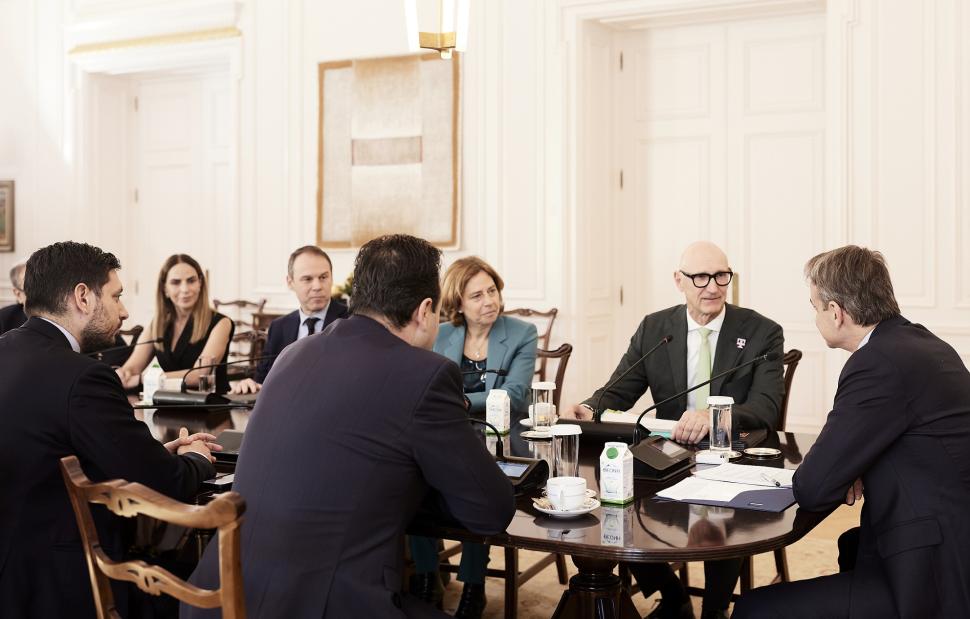 Συνάντηση εργασίας με τον Πρωθυπουργό, κ. Κυριάκο Μητσοτάκη, στο Μέγαρο Μαξίμου, πραγματοποίησε ο CEO του Ομίλου Telekom, κ. Tim Höttges. Στη συνάντηση συμμετείχαν οι Υπουργοί Ψηφιακής Διακυβέρνησης, κ. Δημήτρης Παπαστεργίου και Επικρατείας, κ. Άκης Σκέρτσος, και οι Υφυπουργοί Ψηφιακής Διακυβέρνησης, κ. Κωνσταντίνος Κυρανάκης και παρά τω Πρωθυπουργώ, κ. Γιώργος Μυλωνάκης, καθώς και η επικεφαλής της Telekom για την Ευρώπη, κα Dominique Leroy, ο Senior Vice President for Group Public and Regulatory Affairs της Telekom, κ. Wolfgang Kopf, ο Πρόεδρος και Διευθύνων Σύμβουλος του Ομίλου ΟΤΕ, κ. Κώστας Νεμπής, και η Νομική Σύμβουλος, Chief Officer Νομικών & Ρυθμιστικών Θεμάτων, Public Affairs & Εταιρικής Διακυβέρνησης Ομίλου ΟΤΕ, κα Ειρήνη Νικολαΐδη.