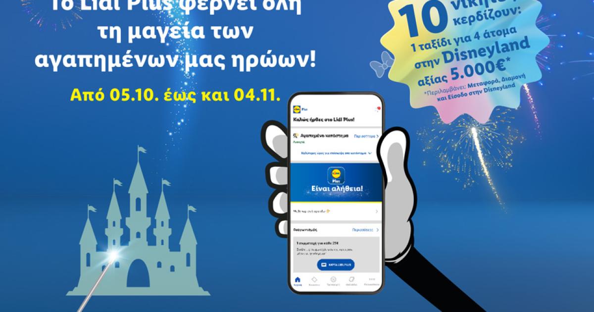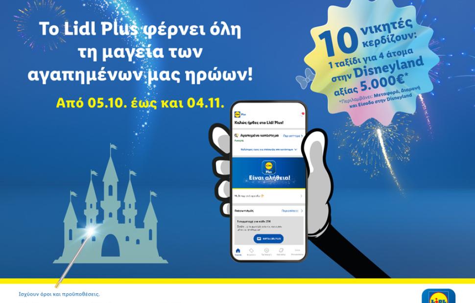 Το Lidl Plus φέρνει όλη τη μαγεία των αγαπημένων μας ηρώων με έναν μοναδικό διαγωνισμό, ο οποίος δίνει την ευκαιρία σε 10 τυχερούς χρήστες της εφαρμογής να ζήσουν την απόλυτη εμπειρία ψυχαγωγίας και να διεκδικήσουν ο καθένας ένα ταξίδι για 4 άτομα στη Disneyland στο Παρίσι, αξίας 5.000€!