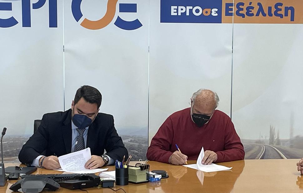 Σήμερα υπεγράφη η Σύμβαση του έργου που αφορά την εγκατάσταση ηλεκτροκίνησης, σηματοδότησης - τηλεδιοίκησης, και ETCS LEVEL 1 στην υφιστάμενη μονή σιδηροδρομική γραμμή καθώς και αναβάθμιση της σιδηροδρομικής γραμμής στο τμήμα Σιδηροδρομικός Σταθμός Λατομείου - ΒΙΠΕ - Σιδηροδρομικός Σταθμός Βόλου.