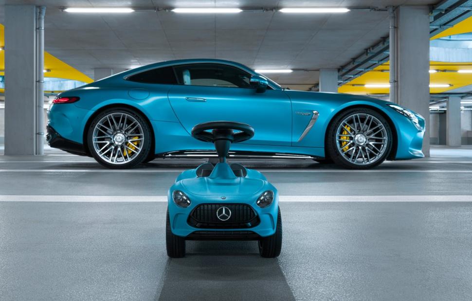 Εντυπωσιακή μάσκα ψυγείου, σπορ μπροστινή ποδιά και πίσω διαχύτης καθώς και μοναδικά φωτιστικά σώματα, όπως ακριβώς και στο πρωτότυπο είναι τα βασικά χαρακτηριστικά των νέων παιδικών αμαξιδίων της Mercedes-Benz και του τμήματος της Mercedes-AMG. Το σπορ μοντέλο Mercedes-AMG GT λειτούργησε και πάλι ως πρότυπο για το νέο παιδικό αυτοκινητάκι Bobby-AMG.