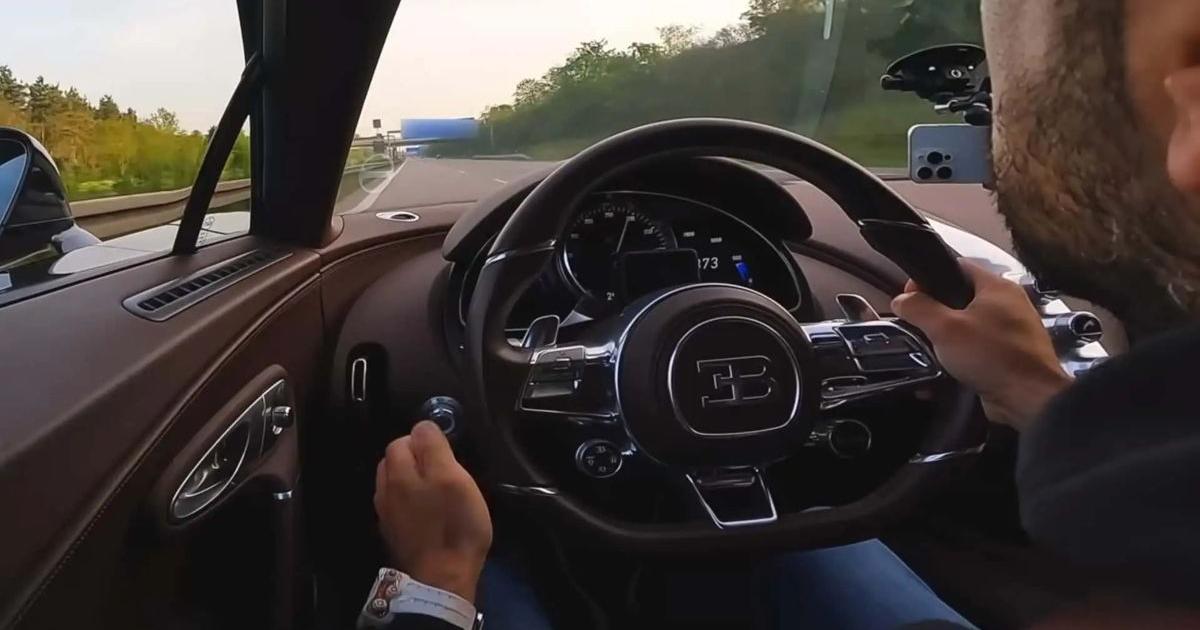 Με τον W16, τα τέσσερα turbo και τους 1.500 ίππους να του φωνάζουν «πάτα το» έκανε ό,τι θα κάναμε όλοι μας και δοκίμασε τις αντοχές του σε σκηνικό fast-forward. Παρά 7 χλμ./ώρα δεν έφτασε στον κόφτη που είναι ρυθμισμένος ηλεκτρονικά στα 420 χλμ./ώρα, αλλά υποθέτουμε ότι και τα 413 χλμ./ώρα… καλά είναι για μία όμορφη καλημέρα.