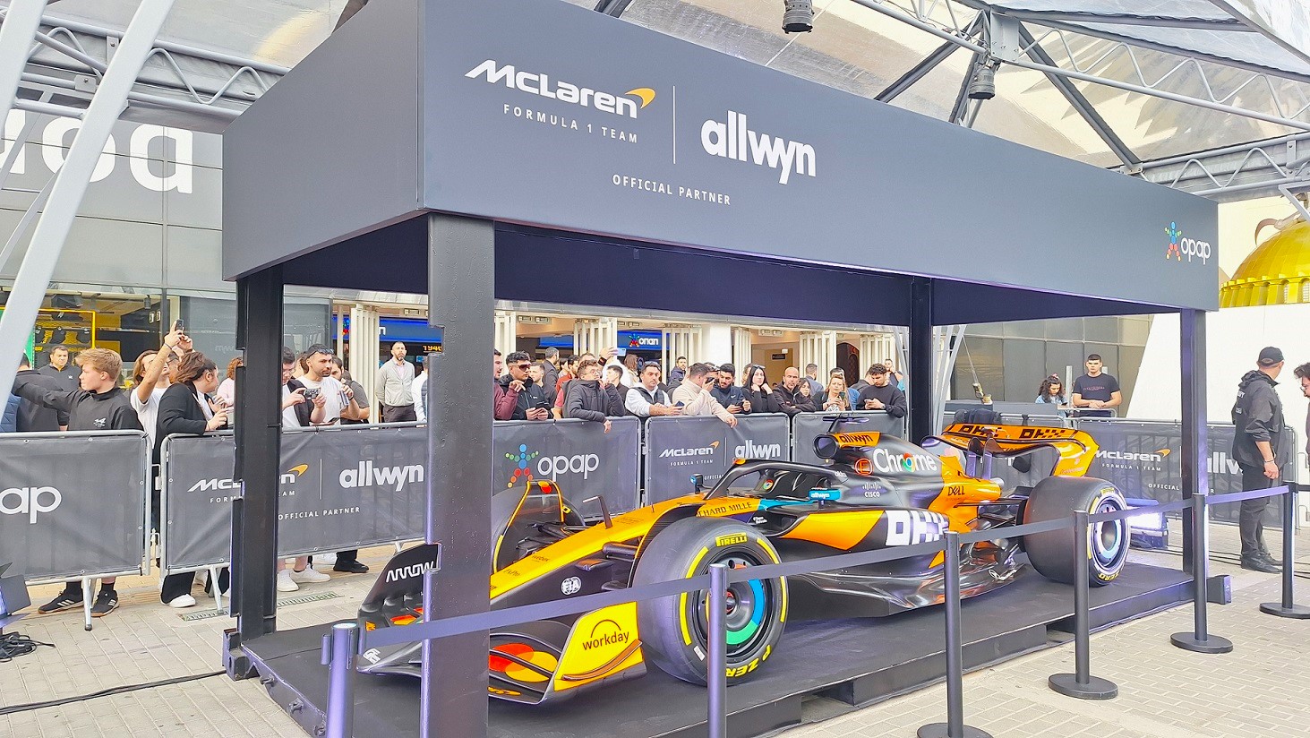 Το μονοθέσιο της McLaren βρίσκεται για πρώτη φορά στη χώρα μας χάρη στον ΟΠΑΠ, στο πλαίσιο της συνεργασίας της μητρικής του, Allwyn, με τη Formula 1 και την ομάδα της McLaren.