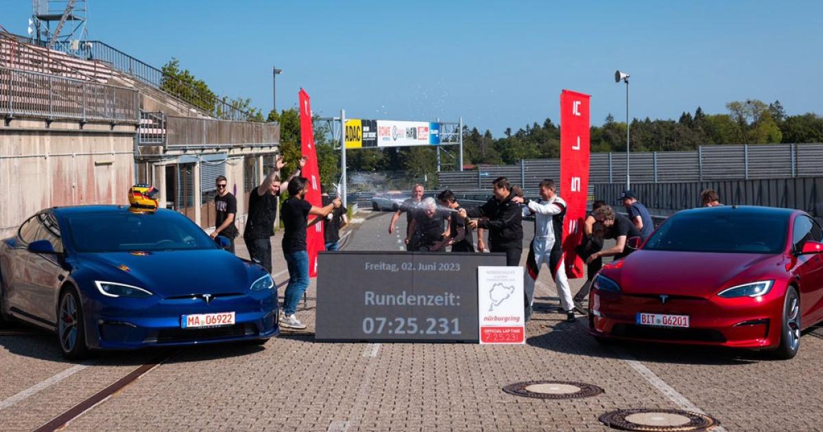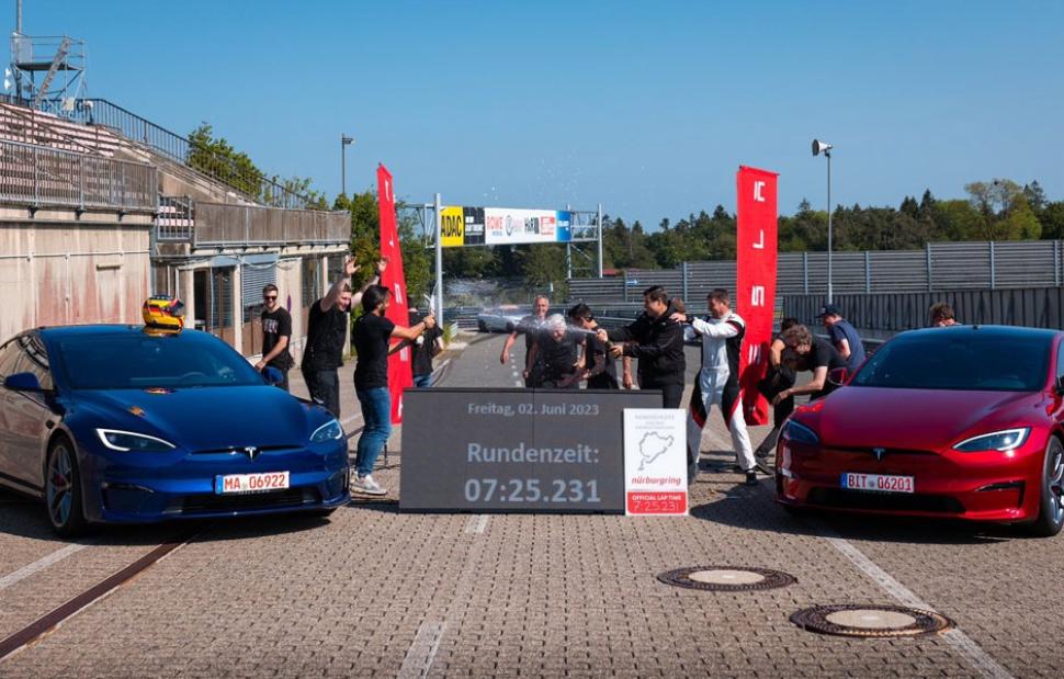 Η Tesla επιβεβαίωσε τη δέσμευσή της σημειώνοντας νέο ρεκόρ για ηλεκτρικά αυτοκίνητα παραγωγής στο Nürburgring στις 2 Ιουνίου 2023. Ο επαγγελματίας οδηγός αγώνων Tom Schwister «έγραψε» με το αναβαθμισμένο Model S Plaid τον εκπληκτικό χρόνο 7 λεπτών και 25,231 δευτερολέπτων, ξεπερνώντας τον χρόνο της Taycan του Kern κατά πάνω από οκτώ δευτερόλεπτα.