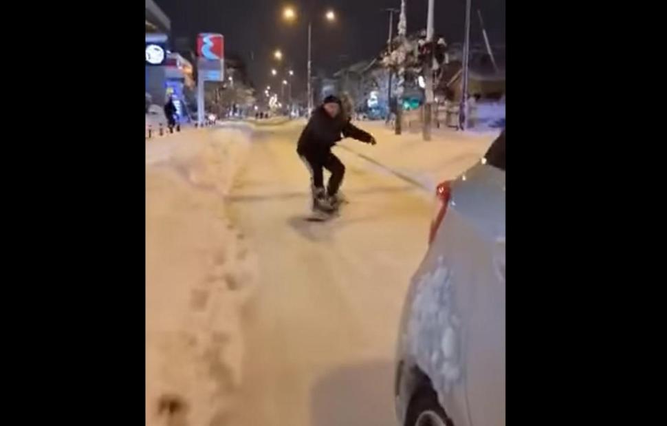 Μερικοί όμως άνθρωποι φαίνεται να μην αντιλαμβάνονται την κρισιμότητα της κατάστασης. Την στιγμή που όλα τα διαθέσιμα μέσα διάσωσης και οι υπηρεσίες βοήθειας είχαν βαρέσει κόκκινο από το φόρτο εργασίας, κάποιοι θεώρησαν σωστό να δέσουν έναν ιμάντα πίσω από ένα λευκό Yaris και να τραβήξουν έναν φίλο τους με το snowboard πάνω στην κεντρική λεωφόρο των Βριλησσίων.