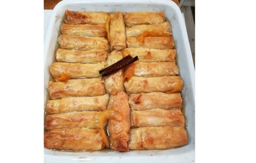 - Για το σιρόπι: Βράζετε σε κατσαρόλα το νερό, τη ζάχαρη και τη φλούδα λεμονιού για 8 λεπτά. Με τρυπητή κουτάλα βουτάτε λίγο-λίγο και ένα-ένα τα ψημένα ρολά στο σιρόπι, αφού βέβαια έχει κρυώσει ελαφρά (1 λεπτό μετά από την ετοιμασία του). Στραγγίζετε τα ρολά και τα σερβίρετε.