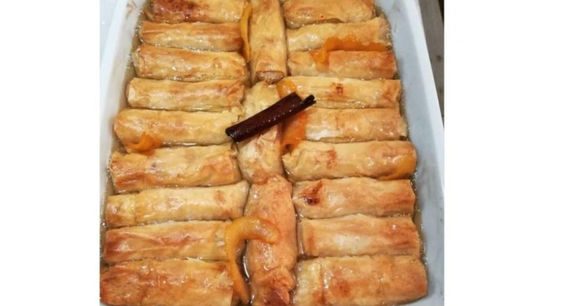 Προσθέτετε δύο κουταλιές βούτυρο, το ξύσμα και ανακατεύετε. Αφήνετε την κρέμα να κρυώσει και την αναδεύετε τακτικά για να μη σχηματιστεί κρούστα στην επιφάνεια της. Παίρνετε ένα φύλλο κρούστας και το κόβετε σε τρεις ίσου μεγέθους και διάστασης λωρίδες. Συνεχίζετε με τα υπόλοιπα φύλλα και τα βάζετε το ένα πάνω στο άλλο. Παίρνετε δύο λωρίδες και τις αλείφετε με βούτυρο. Τοποθετείτε στην επιφάνεια τους από μία κουταλιά κρέμα, διπλώνετε τις δύο άκρες και τυλίγετε σε ρολό. Επαναλαμβάνετε την ίδια διαδικασία με τις υπόλοιπες λωρίδες φύλλων.