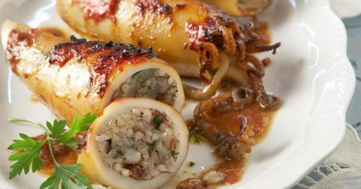 Γεμίζουμε προσεκτικά τα καλαμάρια με τη γέμιση που ετοιμάσαμε και τα κλείνουμε ράβοντας τα με κουζινική κλωστή η με οδοντογλυφίδα.