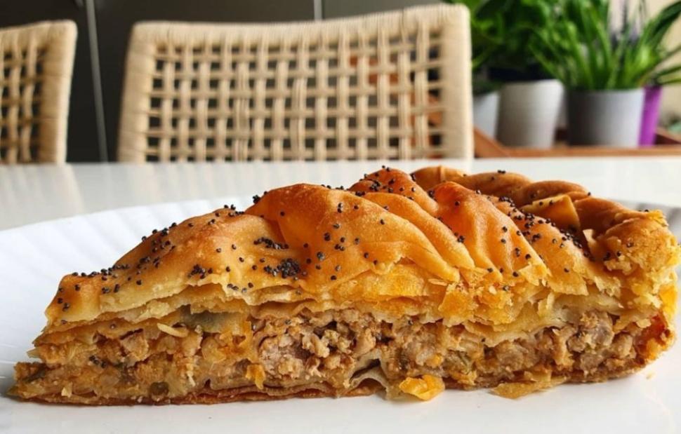 3. Στην επιφάνεια εργασίας, ανοίγουμε με τον πλάστη δύο φύλλα ζύμης στο μέγεθος του ταψιού. Τοποθετούμε το πρώτο στη βάση ενός βουτυρωμένου ταψιού, ρίχνουμε την έτοιμη γέμιση και σκεπάζουμε με το δεύτερο φύλλο. Κατόπιν, τρυπάμε με πιρουνάκι σε δυο τρεις μεριές το φύλλο να φεύγει ο αέρας κατά τη διάρκεια του ψησίματος, αλείφουμε με αυγό, πασπαλίζουμε με σουσάμι ή παπαρουνόσπορο και ψήνουμε σε μέτριο φούρνο μέχρι η κιμαδόπιτα να ροδίσει.
