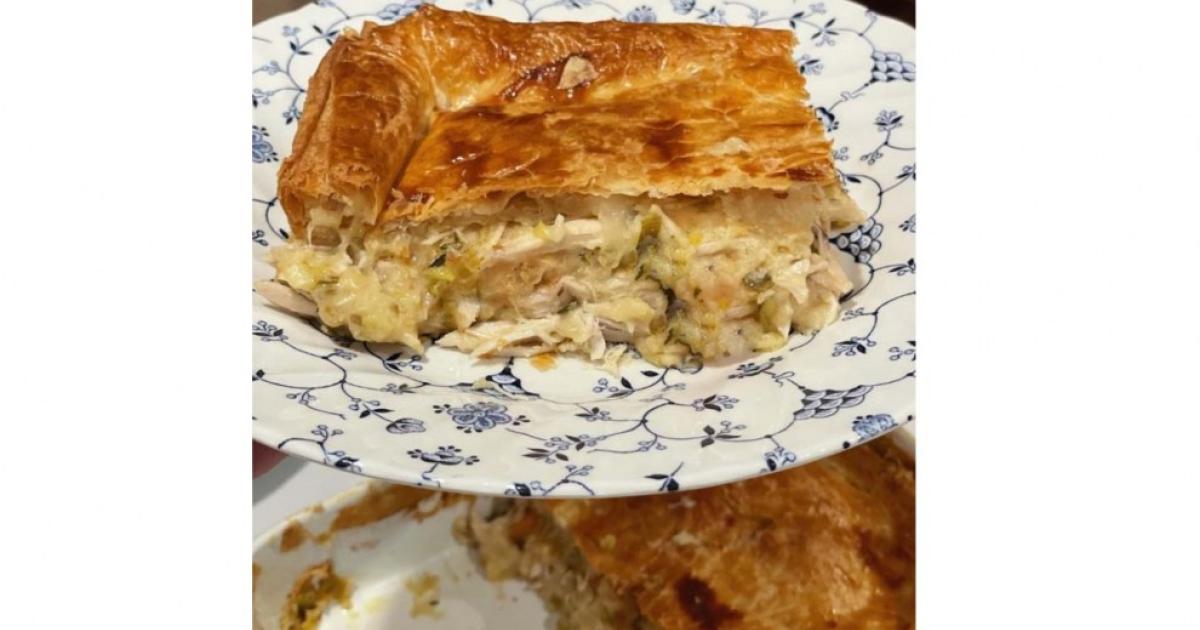 Το προσαρμόζουμε έπειτα στο σκεύος, σκεπάζοντας τη γέμιση και κολλάμε τις άκρες του χρησιμοποιώντας χτυπημένο αυγό, ενώ το φύλλο που περισσεύει το γυρνάμε προς τα μέσα.
