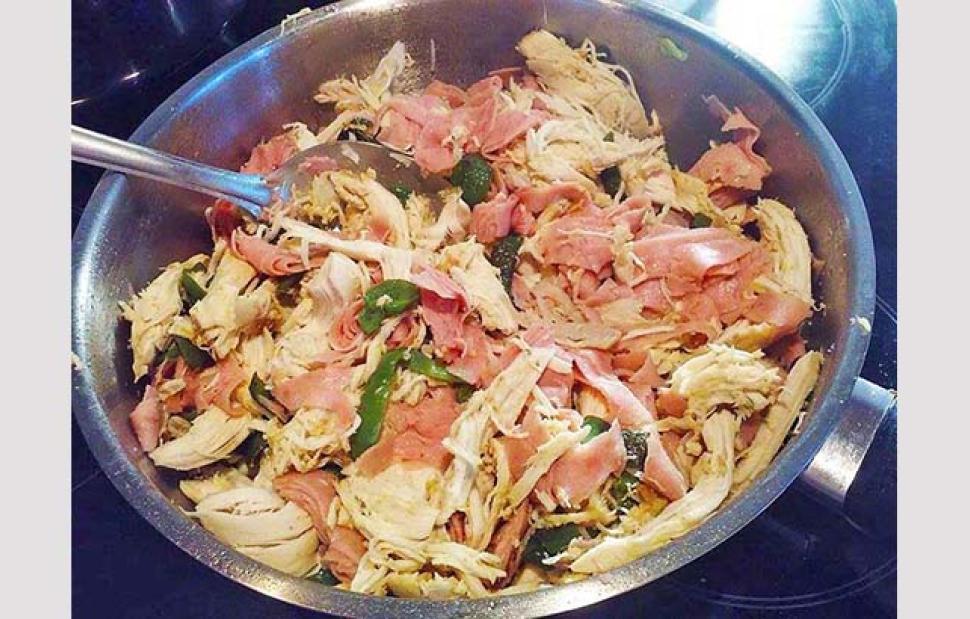 - 1 κιλό κοτόπουλο βρασμένο (σε μέτρια κομματάκια, χωρίς τα κόκαλα)