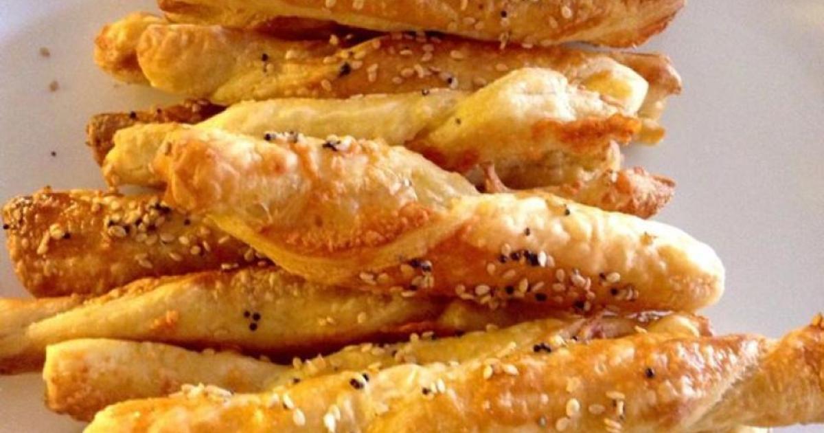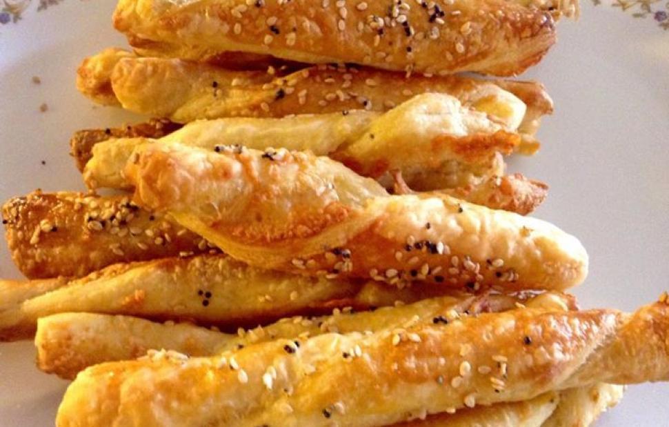 2. Τοποθετείτε τη ζύμη σε αλευρωμένο πάγκο, την κόβετε σε λωρίδες (όχι πολύ λεπτές) και τις στρίβετε σαν πλεξούδες. Τις τοποθετείτε κατόπιν σε ταψί στρωμένο με λαδόκολλα και τις ψήνετε σε μέτρια προθερμασμένο φούρνο για 10 με 15 λεπτά μέχρι να αποκτήσουν το γνωστό λαχταριστό τους χρώμα.