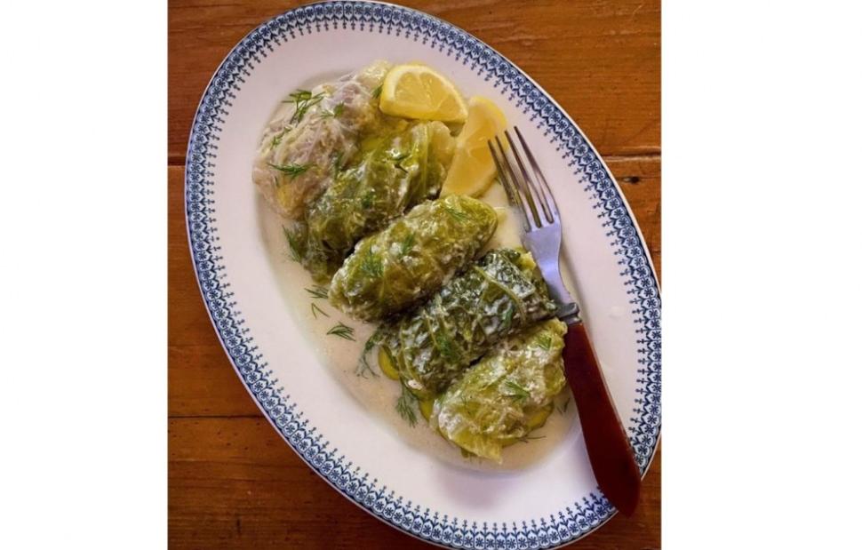 Στη συνέχεια, ανοίγουμε στη παλάμη μας ένα-ένα φύλλο και με κουτάλι τοποθετούμε από λίγη γέμιση, διπλώνουμε ελαφρά, παίρνουμε τα δεξιά και αριστερά πλαϊνά του φύλλου και τα διπλώνουμε προς τα μέσα, ώστε να μη μας βγει η γέμιση από το πλάι και ρολάρουμε. Με τον ίδιο τρόπο συνεχίζουμε μέχρι να τελειώσουν τα υλικά μας.