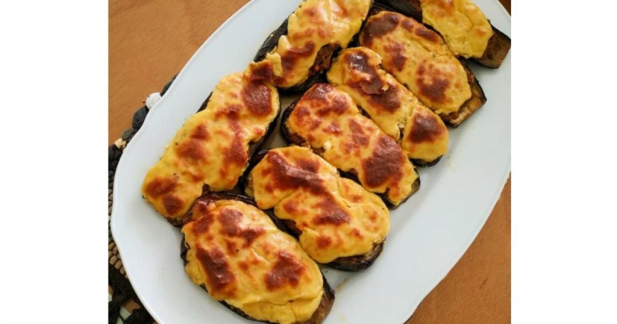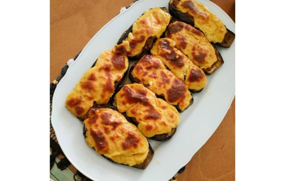 1. Πλένουμε τις μελιτζάνες και τις χωρίζουμε στη μέση. Αφαιρούμε με το κουταλάκι λίγη από την ψίχα τους. Τις βάζουμε έπειτα σε νερό με λίγο αλάτι και τις αφήνουμε για 2 ώρες. Μετά, τις ξεπλένουμε, πιέζουμε ελαφρά ώστε να φύγει το νερό και τις τηγανίζουμε σε μπόλικο λάδι μέχρι να ροδίσουν.