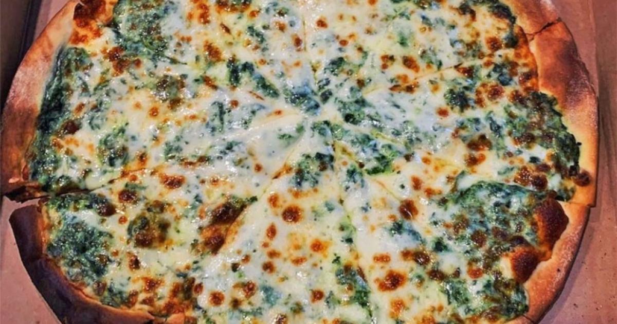Απλώνουμε από πάνω το σπανάκι με τα κρεμμυδάκια και έπειτα σκορπίζουμε τη φέτα πάνω στο σπανάκι. Ψήνουμε την πίτσα σε προθερμασμένο φούρνο στους 180 βαθμούς για περίπου μισή ώρα.