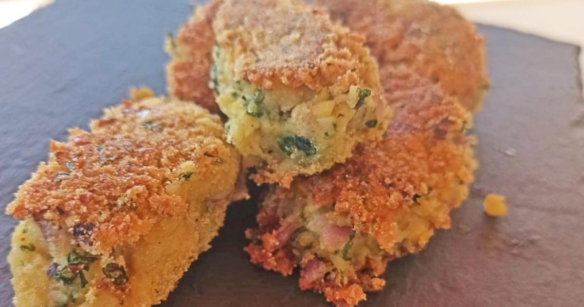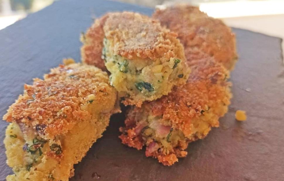 Μετά, πλάθουμε κεφτεδάκια σε σχήμα στρογγυλό και λεπτό, μικρά σε μέγεθος και τα αλευρώνουμε. Βάζουμε σε αντικολλητικό τηγάνι λίγο ελαιόλαδο να καλύψει τον πάτο και τηγανίζουμε τα κεφτεδάκια σε δυνατή φωτιά.