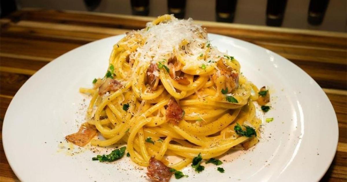 2. Ζεσταίνουμε σε κατσαρόλα το βούτυρο και σιγοψήνουμε το βασιλικό. Ρίχνουμε κατόπιν τα μπαστουνάκια του ζαμπόν και το ψιλοκομμένο σκόρδο. Αφήνουμε για λίγο τα υλικά να σιγοβράσουν και προσθέτουμε τους δύο κρόκους αυγών, χτυπημένους μαζί με την κρέμα γάλακτος. Ανακατεύουμε έντονα, αλατοπιπερώνουμε και περιχύνουμε με τη σάλτσα τα έτοιμα ζυμαρικά.