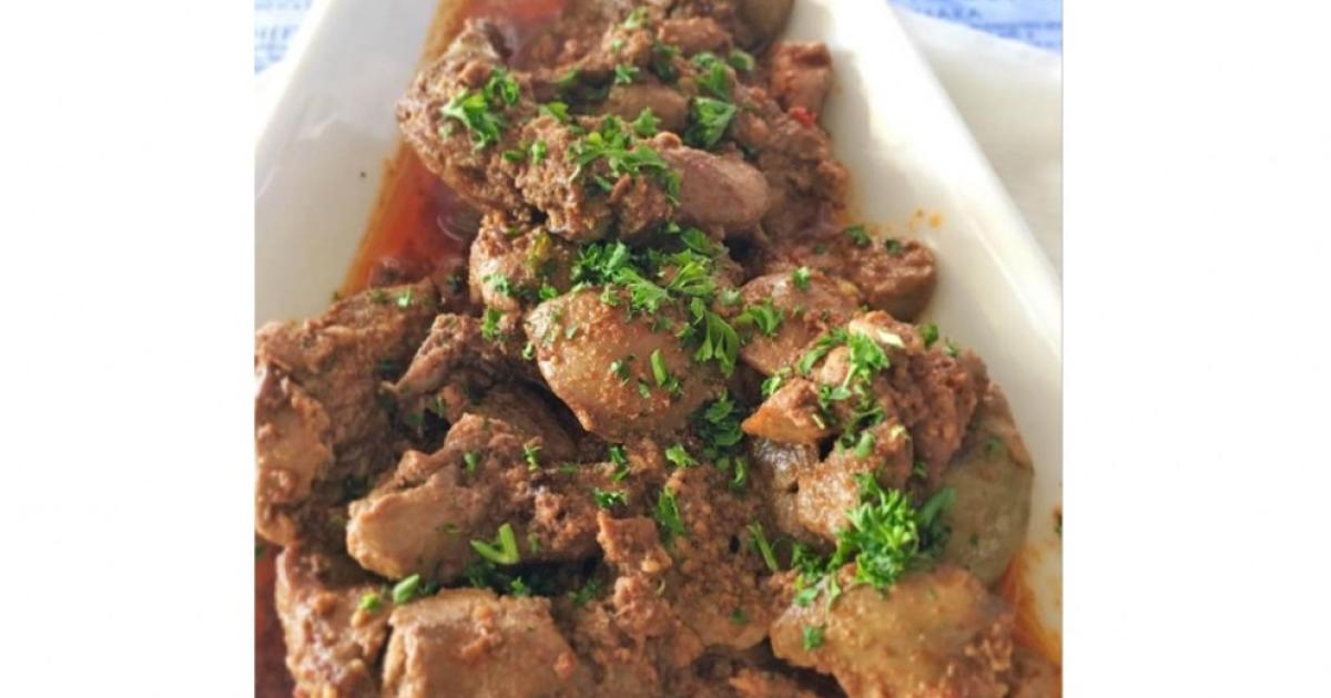 Αφήνουμε τη σάλτσα να βράσει για δέκα λεπτά, σε χαμηλή φωτιά και προσθέτουμε μισό κουταλάκι ζάχαρη αλλά και τα συκωτάκια που έχουμε τηγανίσει νωρίτερα.