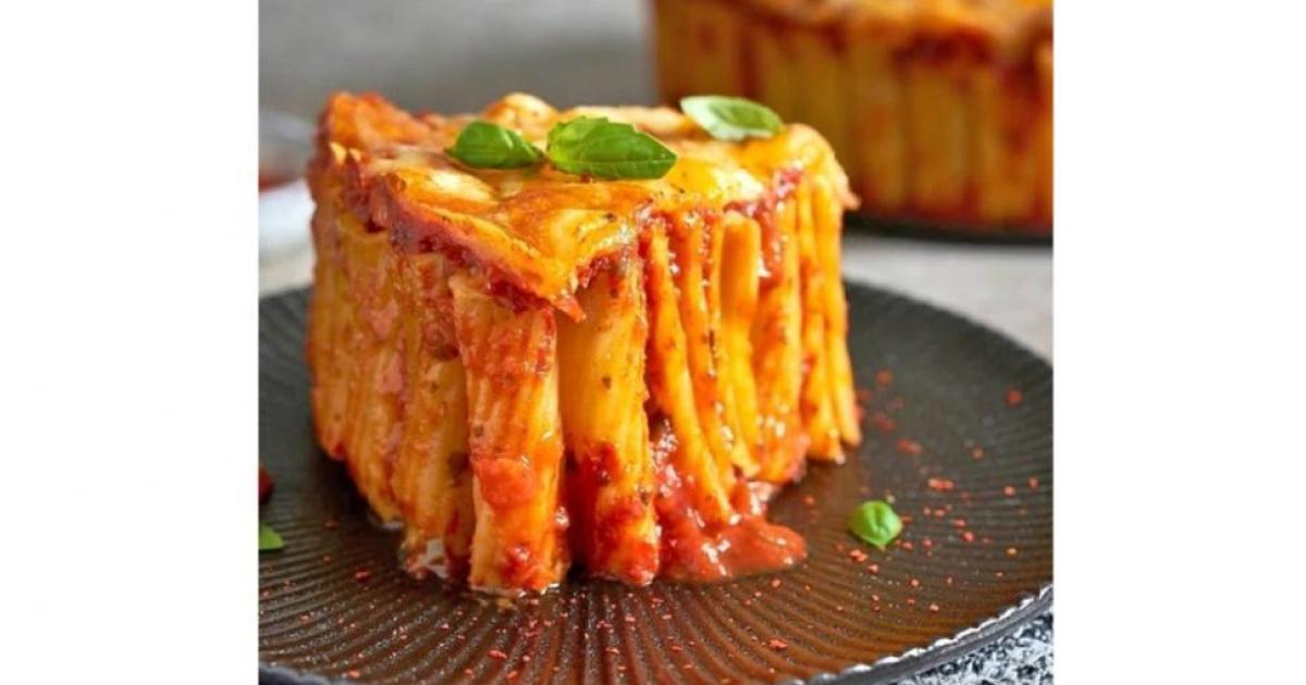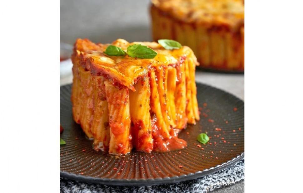 Ανακατεύουμε καλά να αναμειχθούν γεύσεις και αρώματα. Παίρνουμε μια φόρμα με αποσπώμενο τσέρκι (που ξεκουμπώνει), τη λαδώνουμε σχολαστικά σε όλες τις επιφάνειες της και ξεκινάμε να τοποθετούμε τα μακαρόνια κάθετα, το ένα δίπλα στο άλλο, σε όλη την επιφάνεια της φόρμας, όσο μπορούμε πιο κολλητά.