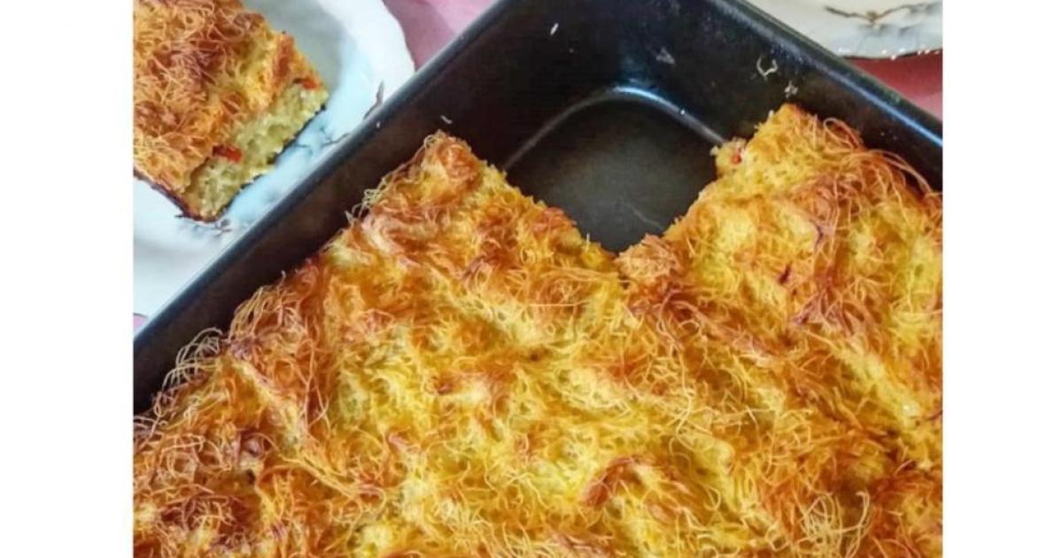 1. Σε λεκάνη, βάζουμε όλα τα τριμμένα τυριά, ρίχνουμε πιπέρι, μοσχοκάρυδο, ανακατεύουμε καλά και τα αφήνουμε στην άκρη. Ξάνουμε με τα δάχτυλα πολύ καλά το φύλλο κανταΐφι ώστε να αφρατέψει και το χωρίζουμε σε δύο ίσα μέρη.