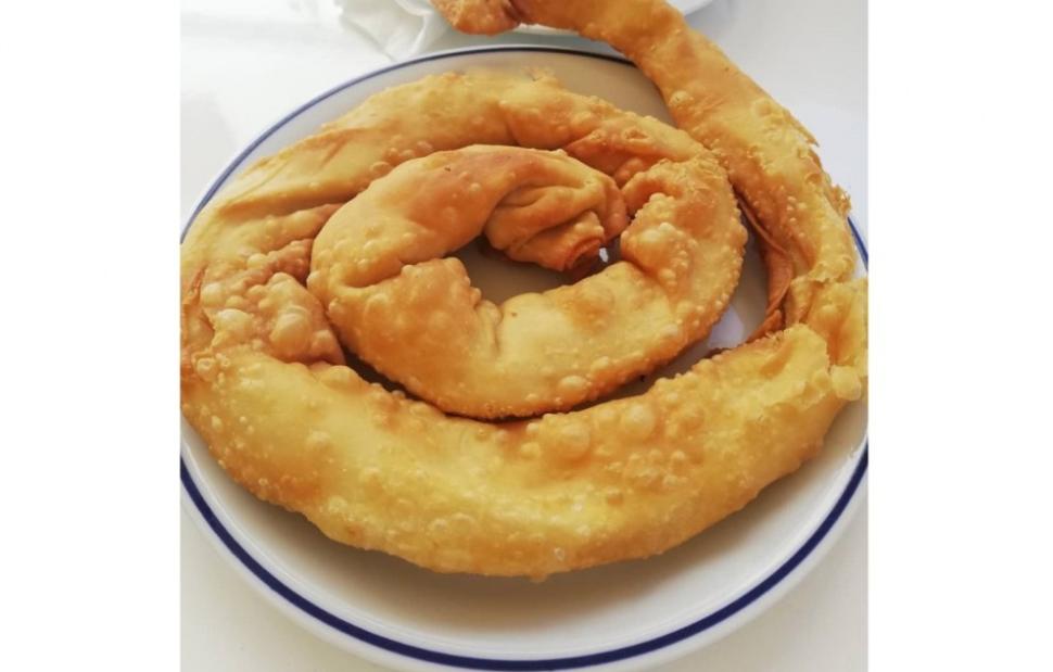 - Σε τηγάνι, βάζουμε αρκετό λάδι να κάψει (θέλει μπόλικο, τουλάχιστον μέχρι τη μέση της τυρόπιτας) και τηγανίζουμε την τυρόπιτα μέχρι να ροδίσει, σε σιγανή φωτιά, δηλαδή στο μισό από το φουλ της κουζίνας μας. Όταν οι τυρόπιτες πάρουν χρώμα, τις βγάζουμε με τρυπητή κουτάλα και τις αφήνουμε να στραγγίξουν σε απορροφητικό χαρτί κουζίνας.