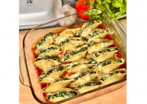 Για 6 άτομα Ετοιμασία: 30 λεπτά Μαγείρεμα: 25 λεπτά Υλικά - 250 γραμμάρια ζυμαρικά, μεγάλα κοχύλια - 500 γραμμάρια σπανάκι - 125 γραμμάρια ανθότυρ...